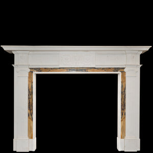 This Blenheim designed surround is a highly attractive Georgian Style carved fireplace from Sienna and Statuary marble.