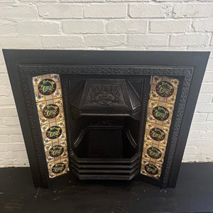 A very pretty and charming Victorian fireplace insert with original floral tiles.