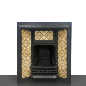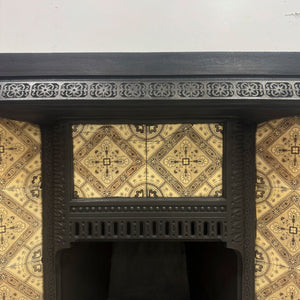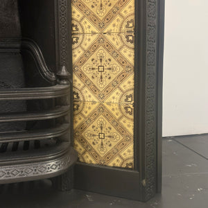 This pretty Victorian piece features two panels of original tiles either side of the basket which is followed through to the hood. A delicate motif border also surrounds the opening of the piece.