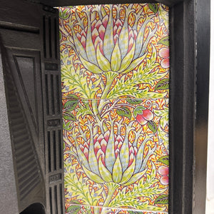 The highlight of this piece lies in its floral tiles, in soft greens and pinks. Together, the rich cast iron and colourful tiles create a perfect balance of form and ornamentation.