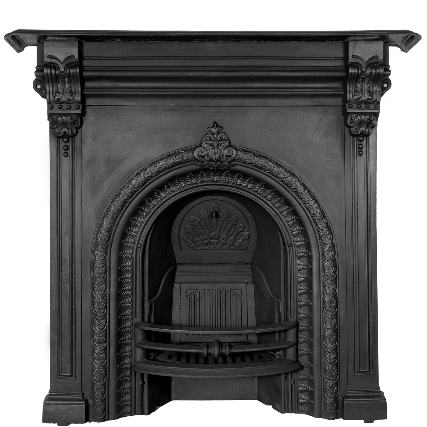 For those looking to mirror the romanticism and elegance of Georgian architecture and interiors, there are a number of fireplaces and inserts with typically neoclassical or Adam’s style decoration – look out for urns, neat foliage decoration and bell flower swags or bell flower pendants on the jambs (legs). However, be aware that these motifs can crop up in Victorian and Edwardian fireplaces too; the stylisation and the proportions are often the truest signifier of age. Another typically Georgian style is the bullseye, which features roundel motifs at each end black and reeded jambs.