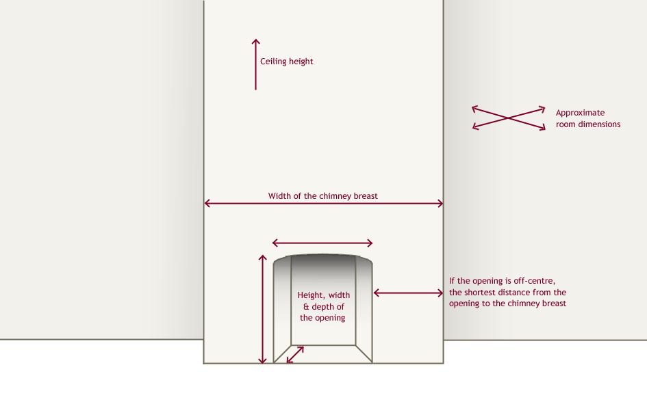 In terms of fitting, it can be useful for us to see what state the chimney is in at the current moment; a photo can be very helpful. Often fireplaces that were refurbished during the fifties and sixties have had the opening made smaller. If this is the case, you can usually return the opening to its original size without much trouble, making it possible to fit in an insert or grate of the right period. Measurements of your chimney are essential too. The measurements that are helpful to us are: