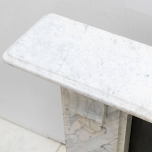 A 19th-century Italian Carrara marble fireplace surround with strong, well-judged proportions and finely carved corbels.