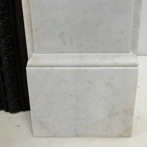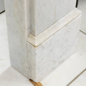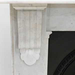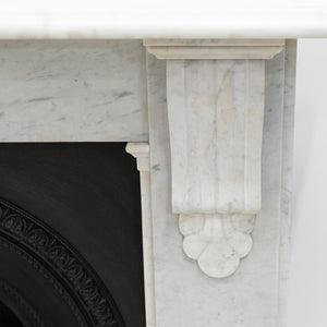 A 19th-century Italian Carrara marble fireplace surround with strong, well-judged proportions and finely carved corbels.