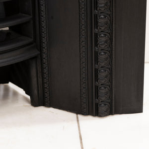 Antique Cast Iron Arched Fireplace Insert with an arched opening and ornate border.