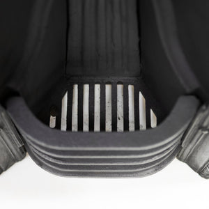 Fully restored in-house and ready for installation, the small 3 bar integral basket sits below an intricate rosette on the damper flap,
