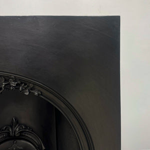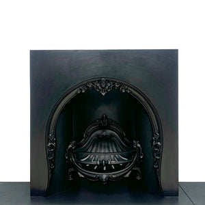 Decorative florals feature to the centre of the insert, above the decorative arched opening and the integral basket. The ornate piece has wonderful deep profile motifs.