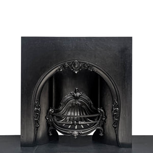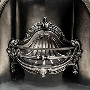 Decorative florals feature to the centre of the insert, above the decorative arched opening and the integral basket. The ornate piece has wonderful deep profile motifs.